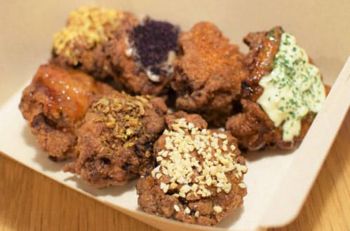 7種類の味から選べる「シェキカラフレーバー」(3個450円~)もラインアップしている。社内で50種類近くを試作した中から、辛いもの、甘いもの、和風味、エスニック味などをバランスよくそろえた。一番人気はチキン南蛮風の「甘酢&タルタル」で、しびれる辛さの「麻辣(マーラー)」、甘じょっぱい味がくせになる「キャラメルナッツ」など意外な組み合わせもある。