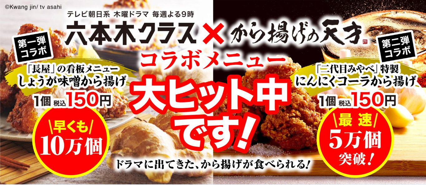 テレビ朝日系木曜ドラマ『六本木クラス』と一緒に、『から揚げの天才』のコラボから揚げにもご注目ください。