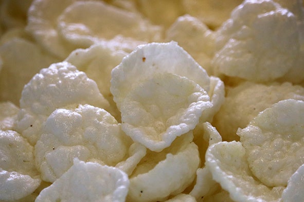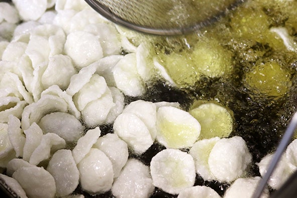 手揚げすることにより、「ふわっ、さくっ」の食感が生まれ、1枚食べるごとに凝縮されたしろえびの風味とお米の甘味が感じらます。