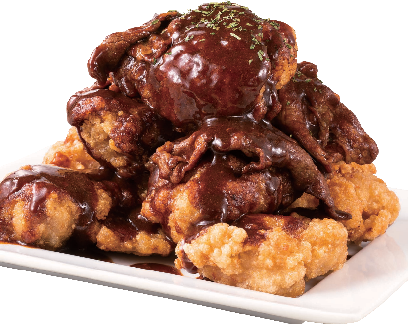 夢の組み合わせの冬限定メニューです。試食を何度も重ね「フォーリンデブはっしー」さんが納得のいくまで、から揚げに合うビーフシチューのソースの開発にこだわりました。これから本格的に寒くなってくる時期に、体が温まるビーフシチューのソースがかかったから揚げをぜひ、味わってみてください。